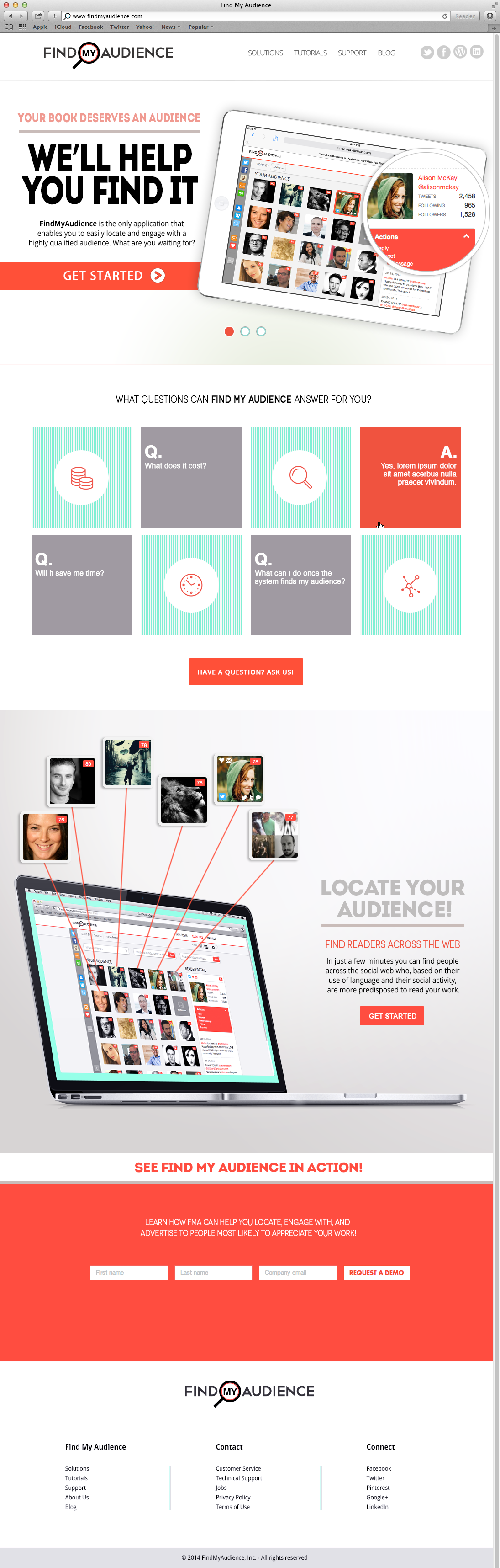 Find My Audience is a SaaS startup aimed at helping writers & artists identify and engage their target audience more effectively. By combining research-driven insights with design strategy, I developed a set of tools and visual frameworks to clarify brand messaging, ensuring that businesses can speak directly to their ideal consumers.